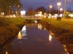 bien canalisée, sépare l'axe d'une petite zone commerciale. Un